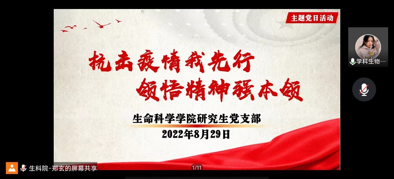 研究生党支部线上组织开展了“抗击疫情我先行,领悟精神强本领”主题的党日活动。研究生党支部书记关晋宏、纪检委员索南吉及全体研究生党员参加会议,会议由郑玄同志主持。