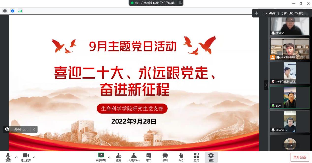 研究生党支部组织研究生党员、发展对象、入党积极分子共计110人,开展“永远跟党走,奋进新征程”主题党日活动。院党总支副书记范建平参加会议,研究生支部组织委员郑玄同志主持会议。