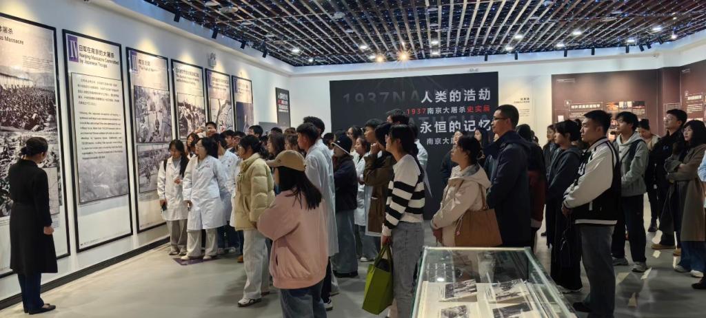 大家在展馆看到了南京大屠杀的影像资料、历史研究著作、普及读物、论文集、智库研究报告和国家公祭主题出版物等。跟着博物馆讲解员,大家深入了解了那段民族苦难的历史,深切缅怀在抗日战争中英勇牺牲的革命先烈。