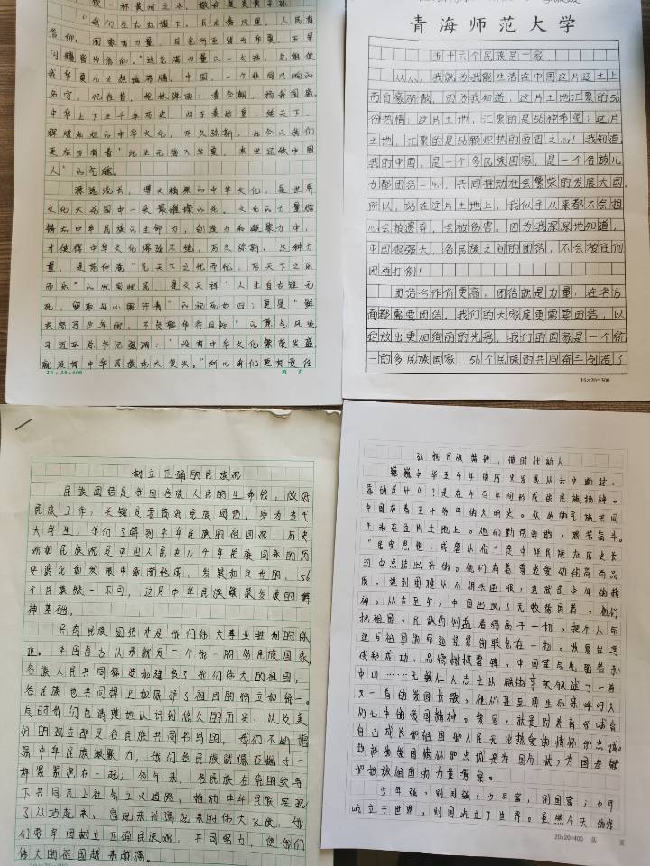 三是开展主题征文活动,筑牢民族团结理念。为了营造良好的舆论氛围,学院组织开展以“树立正确的国家观、民族观、文化观、历史观、宗教观”为主题的征文活动,学生积极撰写主题文章,学院遴选出优秀篇目在学院各网站进行推送,让学生树立正确的民族观,用共同的信念、共同的理想、共同的感情团结和凝聚各族师生,进一步巩固和发展安定团结和谐的校园环境。