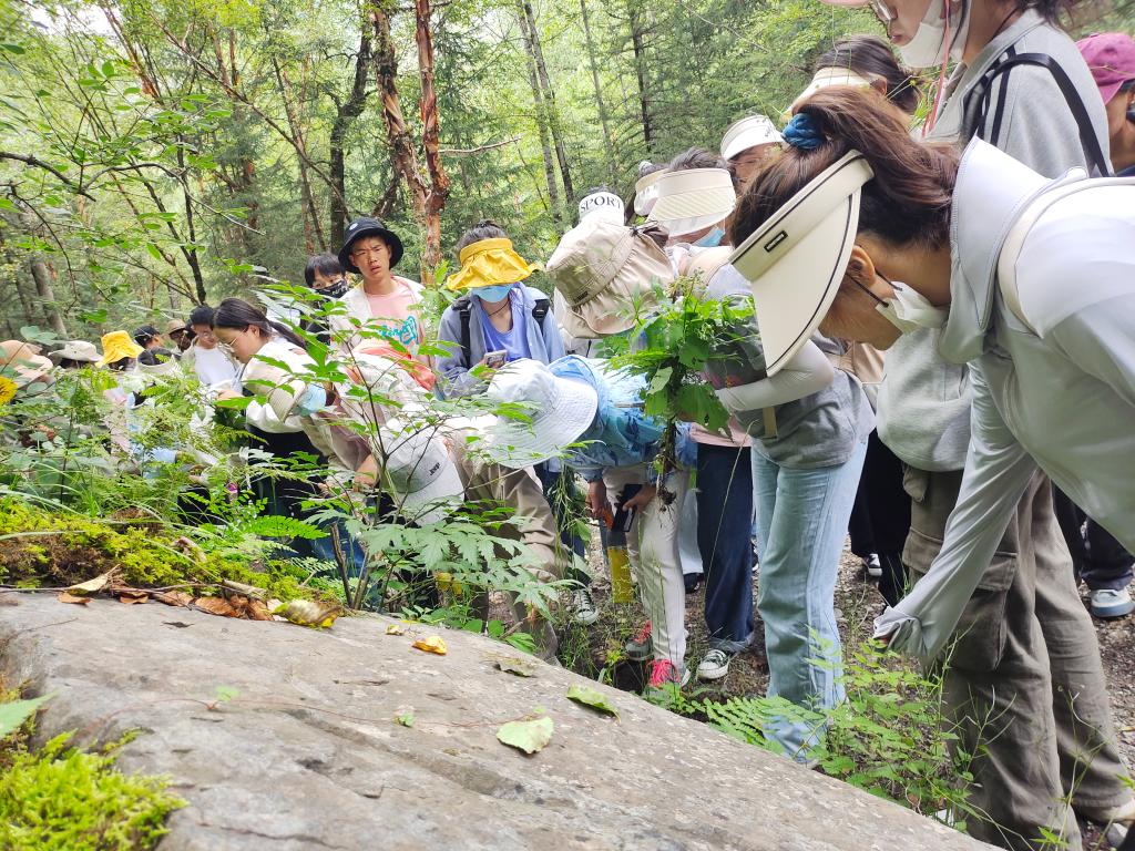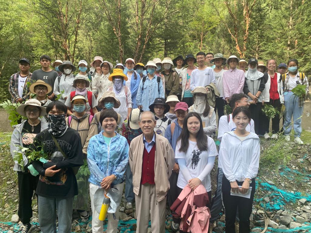 生物学野外综合实习是植物学、动物学、生态学等生物学基础课教学的一个非常重要的环节,是培养学生自主学习、独立思考、团结协作和创新意识的重要途径。为此,2021 级生物科学B班学生于2022 年8 月12 日在互助北山林场开启了为期两周的生物学野外综合实习,本次实习由谢惠春副院长、王慧春教授、关晋宏和李国刚副教授共同带队和指导,有9名研究生参与协助。