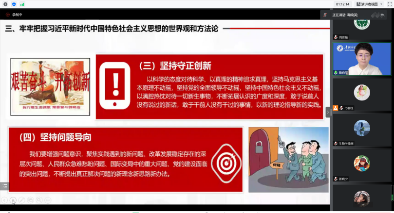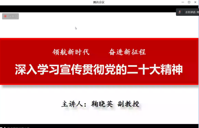线上召开学习贯彻党的二十大精神宣讲报告会,邀请校宣讲团成员、机关党委书记鞠晓英做专题宣讲,学院全体教职工和学生党员参会。