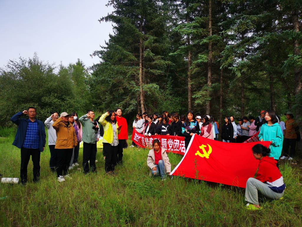组织在互助北山林场野外实习的80余位师生,举行了“学习贯彻习近平新时代中国特色社会主义思想暨强国有我、逐梦高原”主题党团活动。