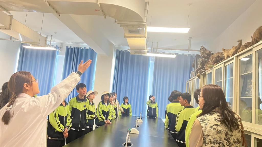 随后,在实验中心老师和助教的带领下,学生们先参观了动植物标本馆,通过对动植物标本的种属和生长环境的讲解,同学们对高原动植物和标本的制作方法有了进一步了解。