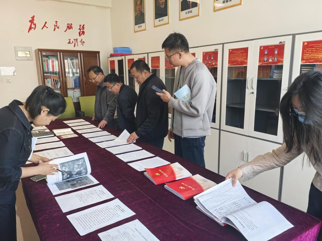 民族师范学院党员活动室,近期整理完成的党建材料整齐有序地摆放在会议桌上,大家一一翻阅,认真学习,同时民族师范学院党委书记钱明仁、机关党支部书记刘云峰热情地进行了逐个介绍,并就党建工作中容易出现遗漏的问题着重讲解。