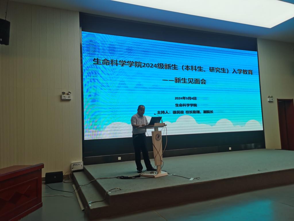 于2024年9月4日,在科技馆报告厅举行了新生见面会。见面会由校长助理徐民俊(副院长)主持,学院班子成员、新生班主任、辅导员、研究生秘书、2024级222名本科生和98名研究生共同参加了见面会。