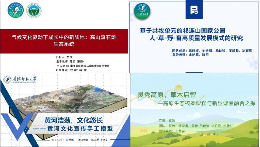 竞赛邀请来自中国科学院西北高原生物研究所、中国科学院盐湖研究所、青海大学及我校14位专家,通过查阅申报材料、PPT汇报、实物展示和答辩,对全校43项参赛作品(其中本科组22项、研究生组21项),进行了综合评分。经激烈角逐,研究生组《基于共牧单元的祁连山国家公园人-草-野-畜高质量发展模式研究》等10项、本科生组《气候变化驱动下成长中的新陆地:高山流石滩生态系统》等14项作品脱颖而出,入围省赛。
