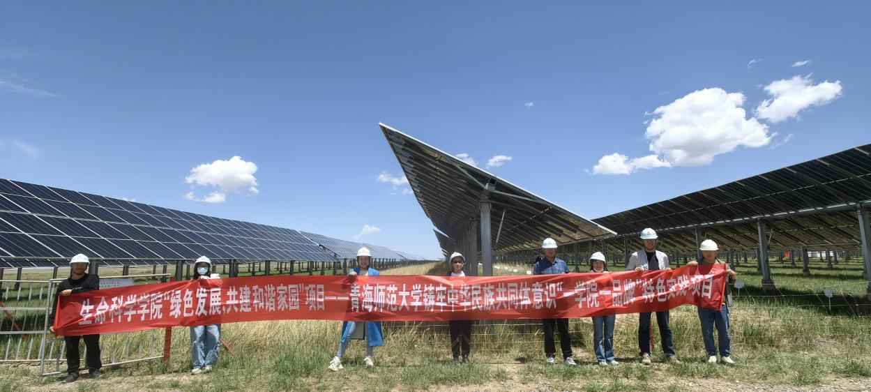 依托专业特色,打造“绿色发展,共建和谐家园”——“一学院一品牌”特色实践项目。6月11日组织师生赴实践基地——海南州共和县大唐清洁能源有限公司光伏板裸地,开展融合生态实践与民族团结宣传特色活动。