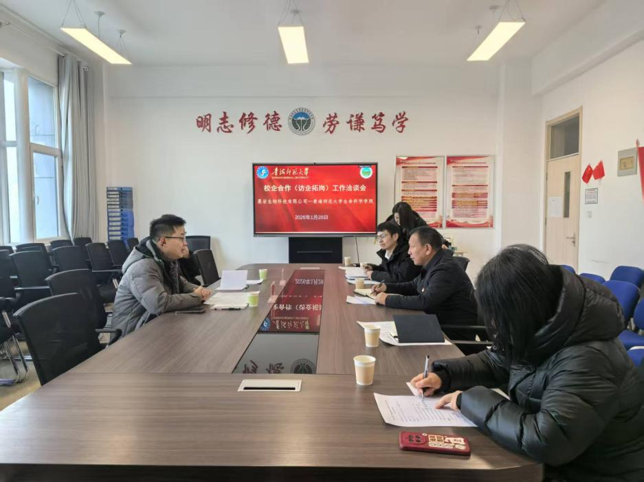 在学科建设、人才培养、科研平台及服务地方经济社会发展等方面的基本情况。唐咏毅总经理详细介绍了墨岩(青海)生物科技有限公司的发展历程、业务布局、技术优势以及当前和未来阶段的人才需求情况,重点表达了企业在生物技术研发、成果转化及高素质应用型人才引进方面的合作意愿。