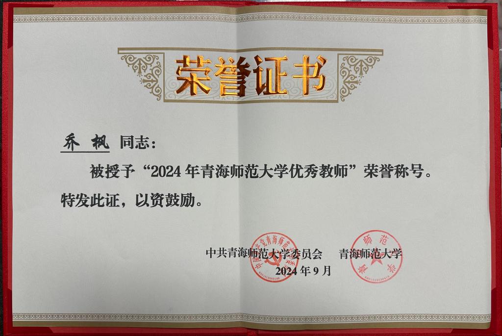 乔枫,女,1973年11月,内蒙古武川县人,南京农业大学生物化学与分子生物学博士,现为青海师范大学PG Soft 教授,博士生导师。2020年被评为青海师范大学“师德标兵”。2024年被授予青海师范大学“优秀教师”荣誉称号。